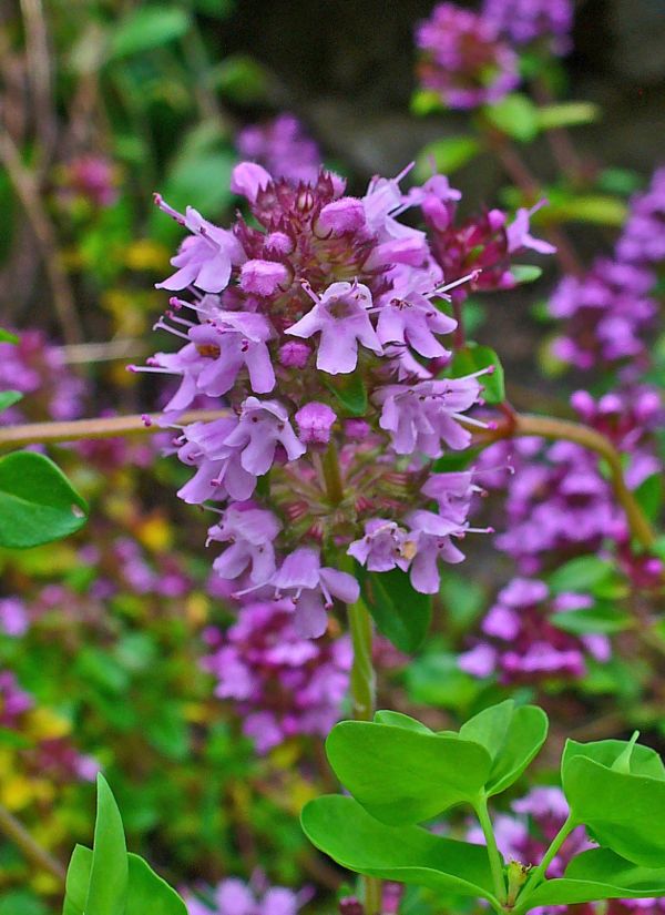 Thyme is a poplar cooking herb with well known antiseptic, antimicrobial and anti-fungus properties. The oil of Thyme was used by ancient Egyptians to prepare mummies and it is still used in commercial mouth washes (Listerine) and cough medicines. It is also used as a pest repellent and mild insecticide.