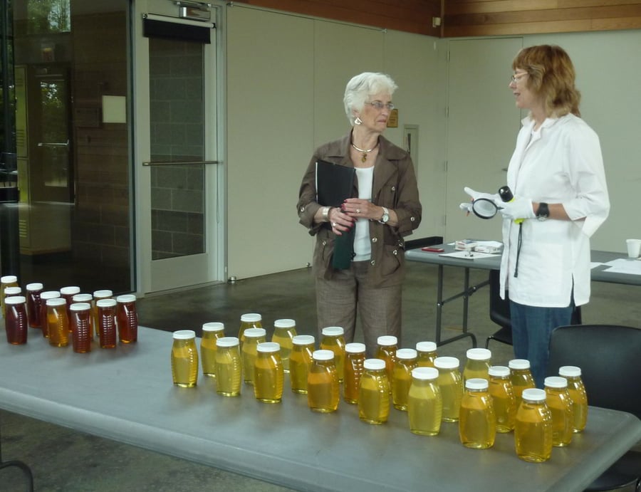 Honey Competition in the Sequoia Room at the Morton Arboretum in Lisle, Illinois, USA on October 7, 2010. Judged by Maggie Wachter of Senior Honey (on the right).