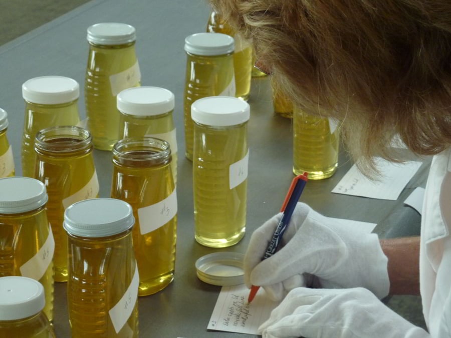 Taking notes on each honey. Aroma must have no chemical smell, including windex used to clean the outside of the bottle. No smoke or fermentation.