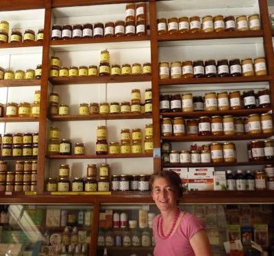 There was a woman behind the counter talking earnestly to a couple. Behind her and surrounding the small shop were walls lined with old wooden shelves that reached high up to the ceiling. I did a double take as I focused in on the shelves beside me. They were filled with jars of… honey! Realization dawned… we’d found it!